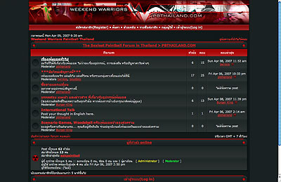 This forum is designed for a paintball community which is an another kind of popular x-treme sports in Thailand. We organize the member's informations, create the brand and logo, make the color theme, write some solid scripts and even help them promote web board via paintball community through out the world. This web board can be reached at http://www.pbthailand.com