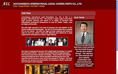 This web site is designed for a law firm called AIL which is based in Bangkok, Thailand. Since they are international lawyers, they request us to design this web site to be looked as simple as possible. We answer the questions and so assignments, then we make it looks classy and stylist together with selected pictures. Our idea is to focus on using the color theme so that it goes smooth and support a bunch of texts. Also we minimize every unnecessaries HTML and all that scripts as much as possible so those visitors will be reached and loaded our client's web site in no time. This web site can be found at http://www.aillawfirm.com
